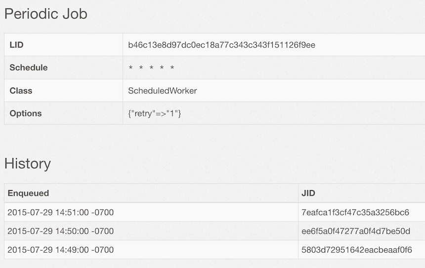 With Sidekiq Enterprise, periodic jobs become simple to create and easy to debug. No more fighting Unix paths, permissions and bash. No more special machine devoted to cron; instead your periodic jobs scale across all your Sidekiq processes.